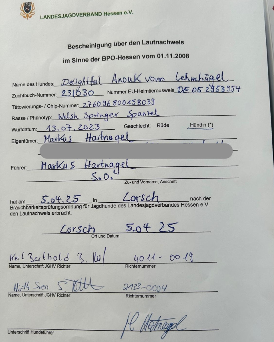 Im Oktober 2025 habe ich die Prüfung zum Mantrailing-Instruktor bestanden.